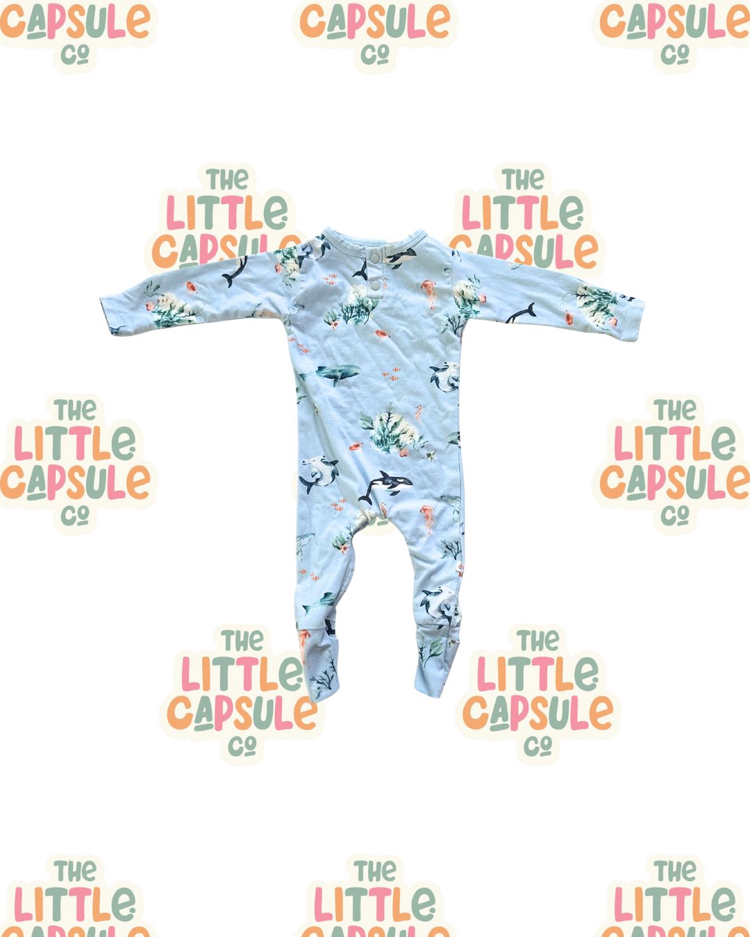 Make a splash 🌊 This Snuggle Hunny long sleeve romper features a gorgeous under the sea print with sweet ocean creatures and soft blue tones. Made from comfy cotton, it’s perfect for day-to-day wear, tummy time, or seaside strolls. Cute, coastal and ready for adventure!