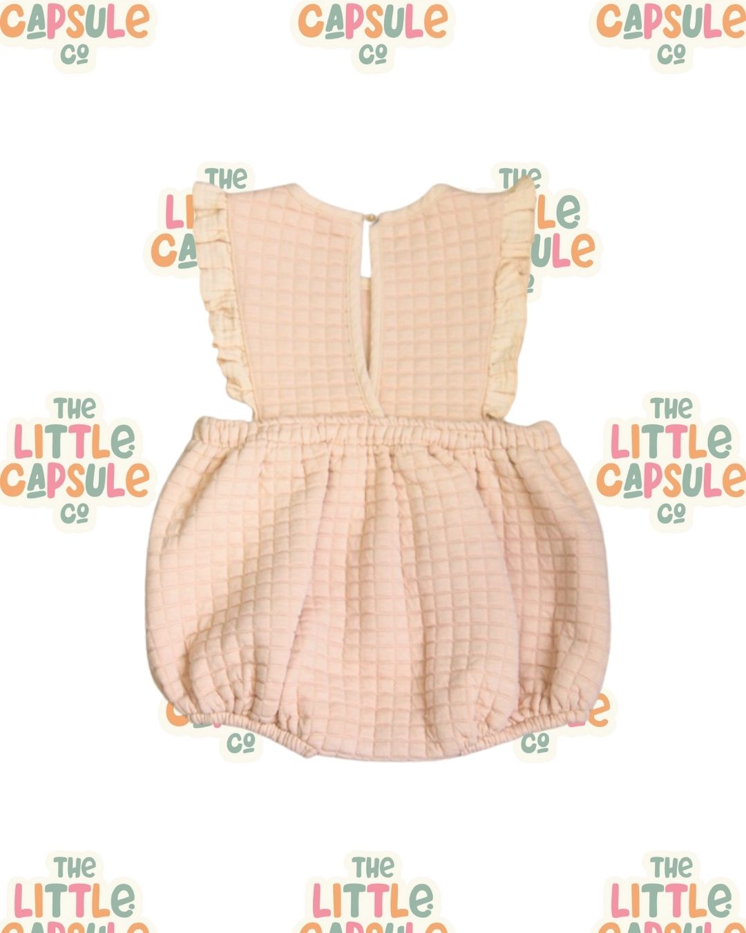 Minimalist and timeless. 🌾 This Quincy Mae sleeveless playsuit in size 1 is crafted from soft beige cotton, bringing an effortless neutral look to little wardrobes. Comfortable and breathable, it’s perfect for warm days, layering, or everyday play with a boutique twist.