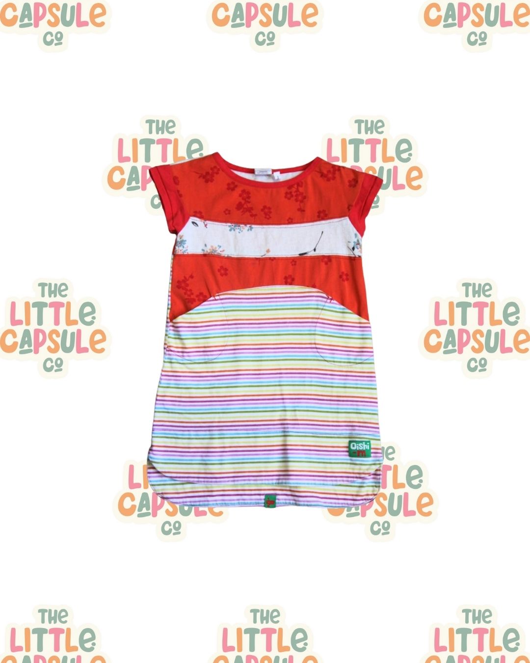 Colour pop fun 🌈 This Oishi-M oversized top brings bold red stripes with a playful rainbow twist – that quirky, eclectic style the brand is loved for. With its relaxed, roomy fit, it’s perfect for layering over leggings or shorts, making it a versatile piece for everyday play and trans-seasonal dressing.