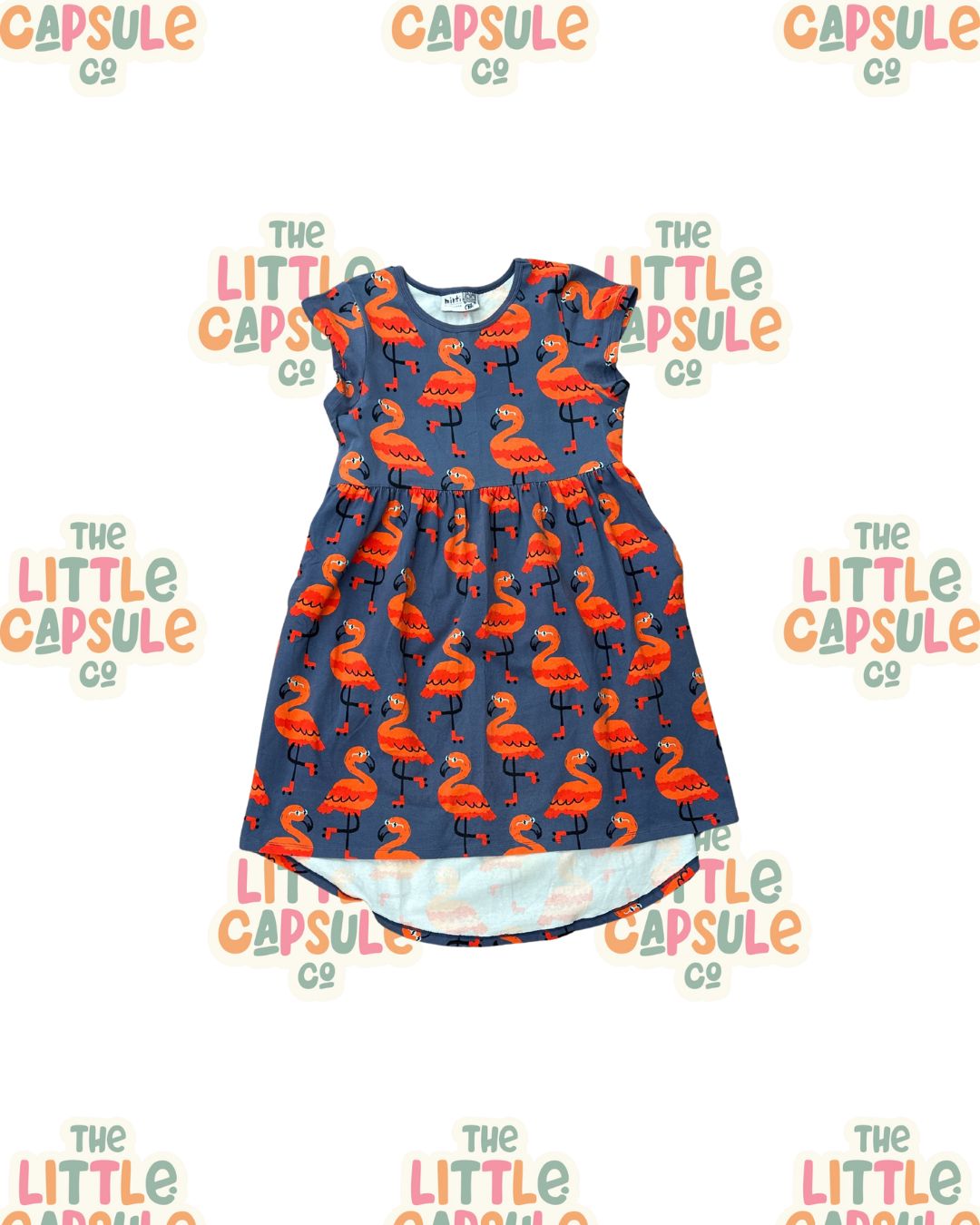 Bold, fun and unapologetically cool 🦩 This Minti dress features a soft base grey fabric with standout orange flamingos scattered throughout - playful without being over the top. The hi-low hemline (shorter at the front, longer at the back) gives it that relaxed street-style edge Minti is famous for.